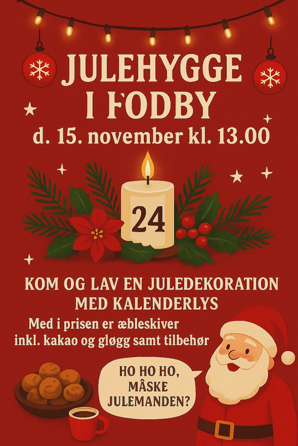 🕯️ Lørdag d. 15. november kl. 13.00 inviterer vi til Julehygge i Forsamlingshuset, hvor vi sammen laver små juledekorationer med kalenderlys.